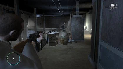 Grundsätzlich ist es hilfreich, zunächst Granaten in die nächstobere Ebene zu werfen und fortwährend nach weiteren explosiven Gasflaschen und Fässern Ausschau zu halten. Dies minimiert auch das erhebliche Risiko, dass solche Explosivkörper durch Feindbeschuss neben Niko explodieren und diesen ins Jenseits befördern. Granaten sollte man vorzugsweise schräg werfen, damit diese keinesfalls in Nikos Richtung zurückprallen. Sollte Niko getroffen werden: Ein erstes Gesundheitspickup findet sich gleich am Ende des Eingangsbereiches/-gangs, eine frische Schutzweste am Ende der Galerie im ersten Stock vor der Treppe und ein weiteres Gesundheitspickup im zweiten Geschoss.