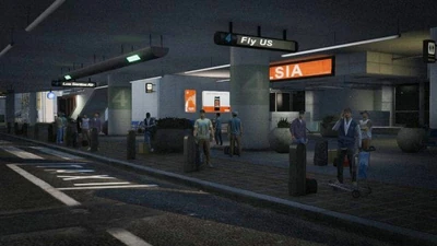 Der Flughafen verfügt über vier Terminals, die um die U-förmige Straße herum platziert sind. Keines der Terminals ist betretbar, und obwohl jedes Terminal zwei festgelegten Airlines zugeordnet ist, gehören die Flugzeuge auf dem Rollfeld nur selten zu diesen Fluggesellschaften, da sie zufällig generiert werden.
