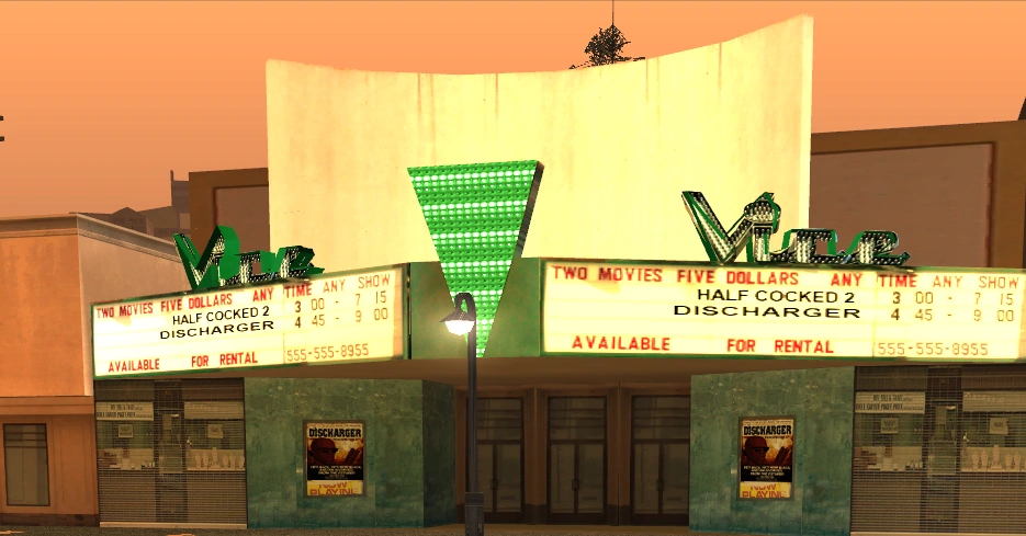 Vice ist ein nicht betretbares Kino in Temple, Los Santos am Vinewood Boulevard und ein betretbares World of Coq-Restaurant am Old Venturas Strip, Las Venturas aus Grand Theft Auto: San Andreas. Die Telefonnummer ist 555-555-8955, unter der man aber keine Filme leihen kann, wie es auf dem Schild steht.