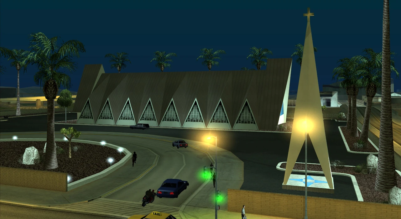 El edificio se inspira en su totalidad en la Catedral del Ángel de la Guarda, hallada en 302 Cathedral Way [1], en la ciudad de Las Vegas.