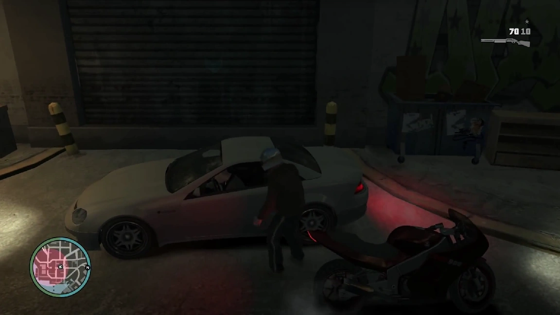 Al final, Niko se cansa de la actitud desquiciada y creída de Brucie y le practica una técnica de lucha del ejército, dejándolo en el suelo. Brucie le dice, dolorido, que tiene que enseñarle eso. Una vez recuperado, Brucie le explica a Niko que sabe que necesita dinero y él puede dárselo, pero que su trabajo en el garaje no es del todo limpio y no es para "hijitos de mamá". Niko acepta, diciendo que está dispuesto a hacer lo que sea. Brucie se alegra y le explica que hay dos tipos escondidos a los que debe matar por algunos problemas, luego le pide a Niko que los busque y los mate, y luego averiguará los métodos.
