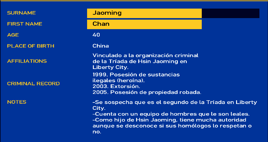 Su perfil en la base de datos del LCPD.