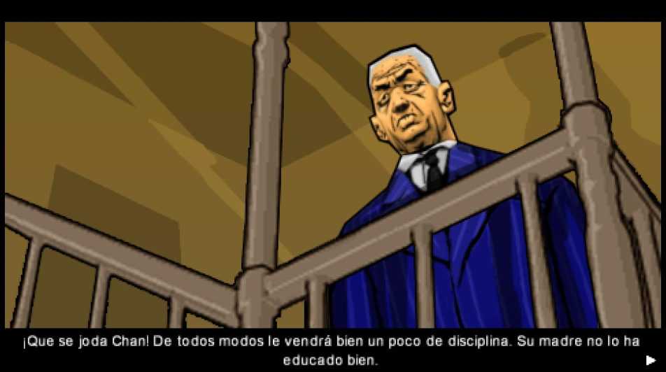 Chan diciéndole a Huang que es inocente.