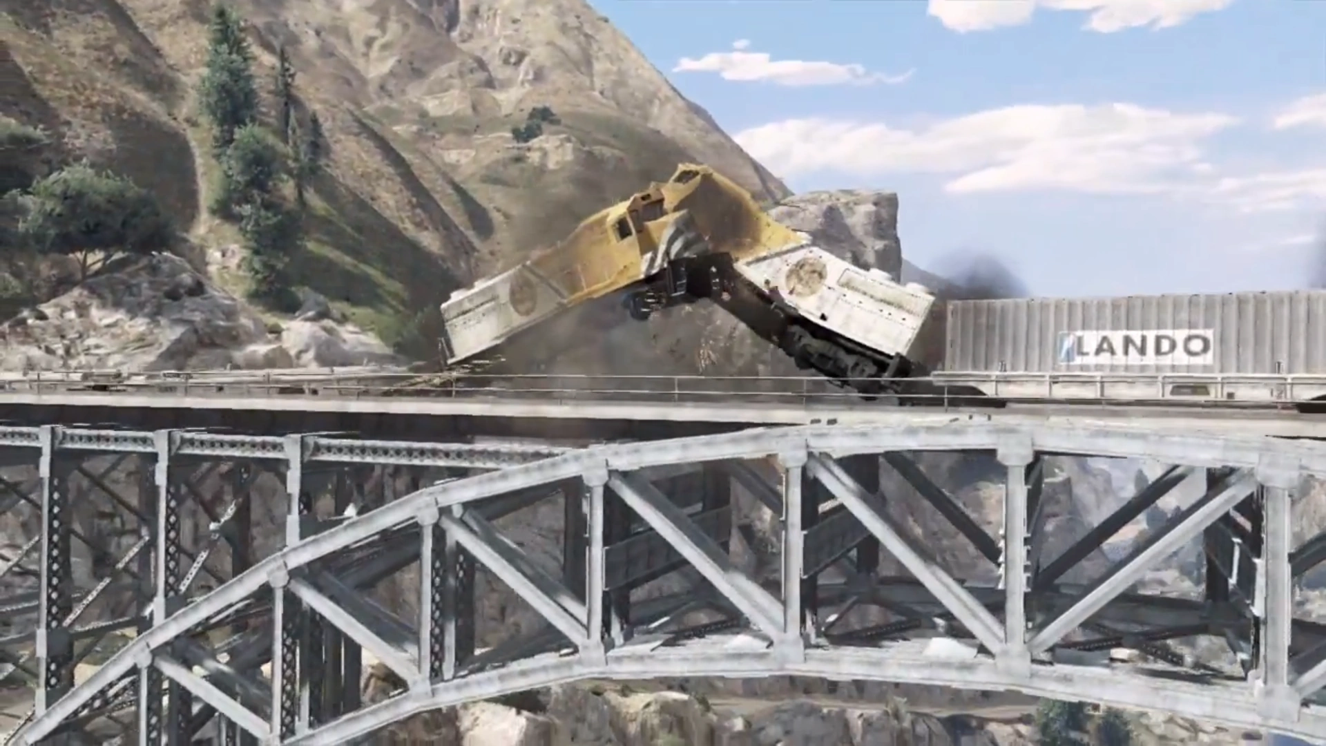 Trevor utiliza una Sánchez hacia las vías al este de Sandy Shores. Trevor usa algunos acantilados rocosos y afloramientos a lo largo de las vías para saltar encima de los vagones portacontenedores del tren. Luego monta la bicicleta a través de los vagones del tren y salta sobre los huecos en los contenedores, y finalmente llega a la locomotora. Entra en la cabina de la locomotora, dice "hola" al conductor y luego procede a noquearlo, golpeándole la cabeza contra el tablero. Trevor pasa por alto la unidad de Merryweather que espera en la estación de Paleto Bay, donde se suponía que el tren se detendría.