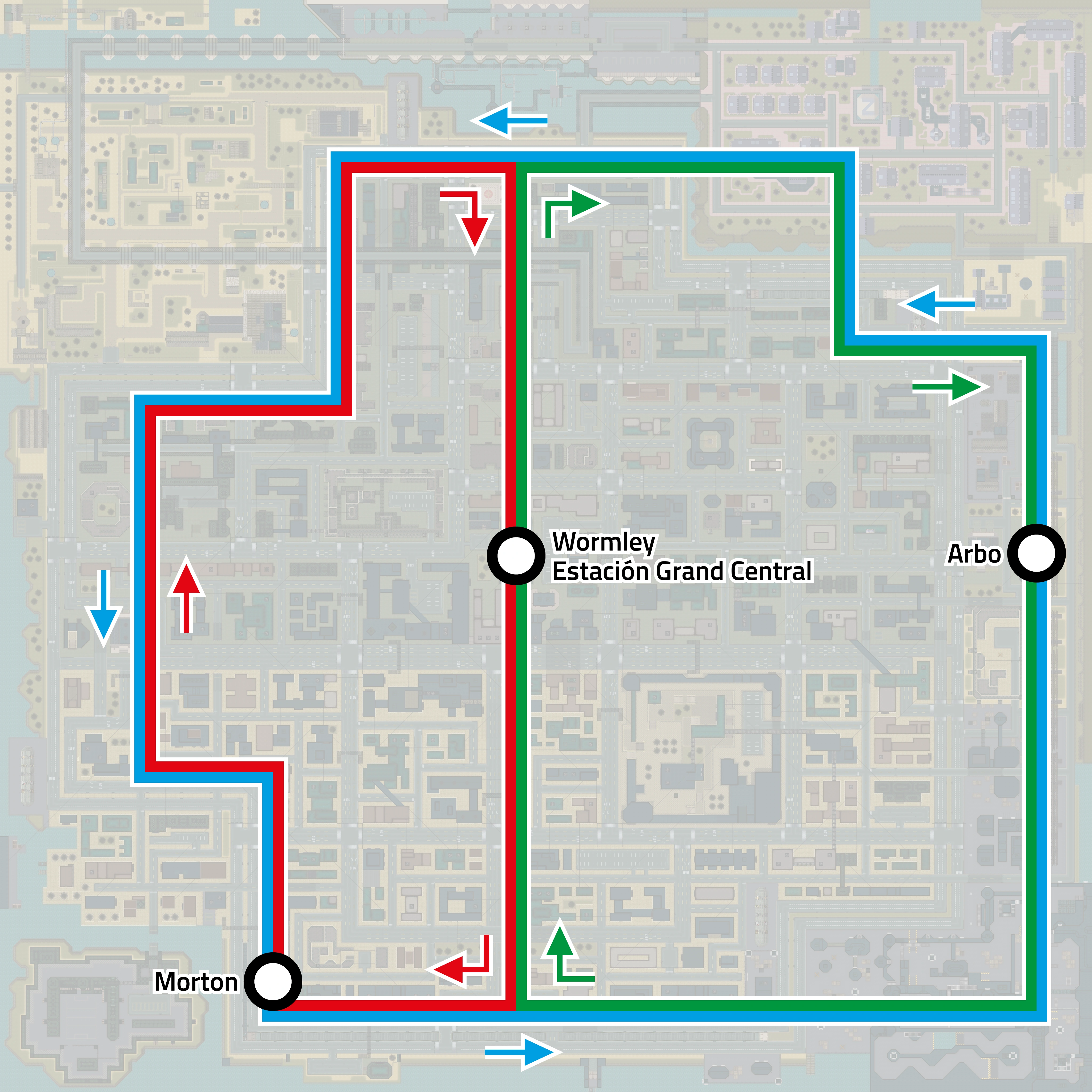 El distrito consta de 3 líneas de tren y un total de 3 estaciones. Dos de estas líneas cubrirán la zona este y oeste del distrito respectivamente, enlazando ambas en la estación Grand Central en Wormley. La línea que va hacia el este parte hacia Arbo para luego volver, mientras que la otra irá hacia Morton.