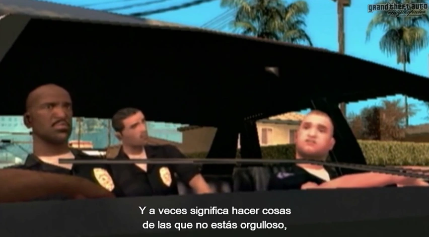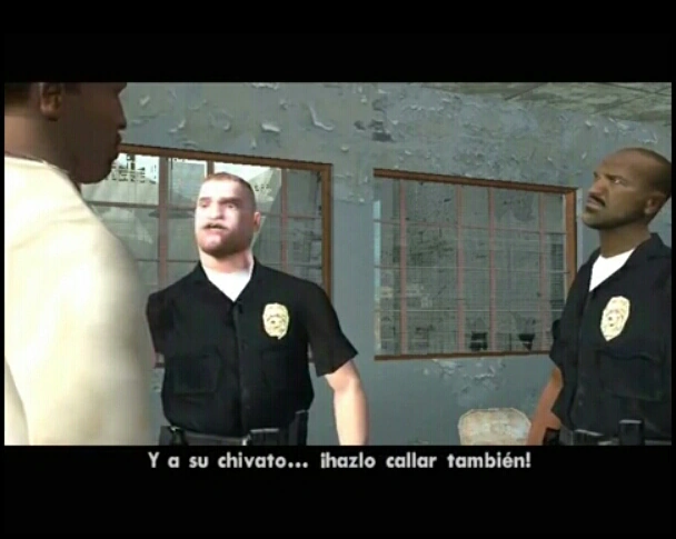 Los oficiales dándole la bienvenida a CJ.