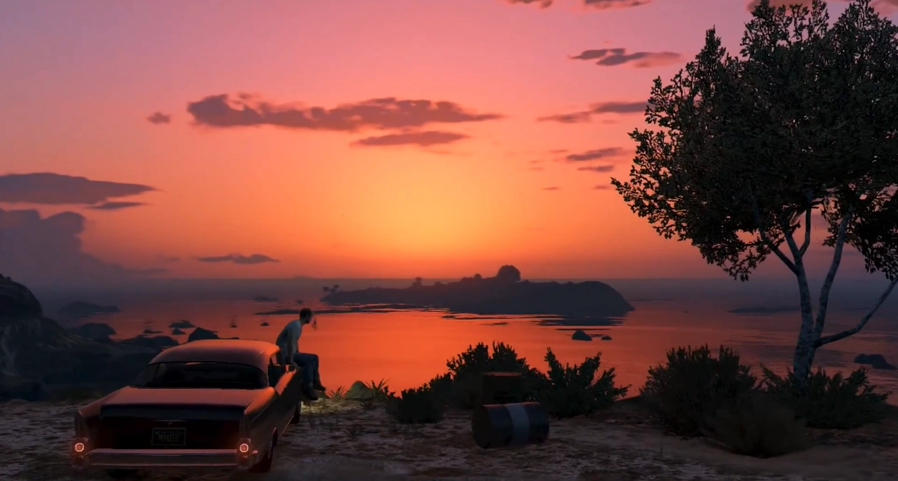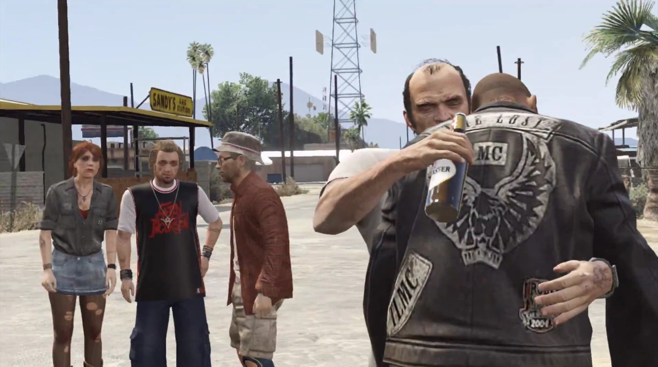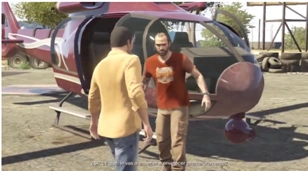 Michael se encuentra sentado en su sofá viendo la televisión en su casa, y entonces llega Trevor.