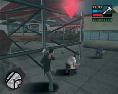 (CJ llega a la casa de Smoke, e inspecciona si se encuentra en el garaje, pero aparentemente no esta; acción seguiente toca la puerta y Big Smoke lo oye y aparece levantandosé detrás del coche.)