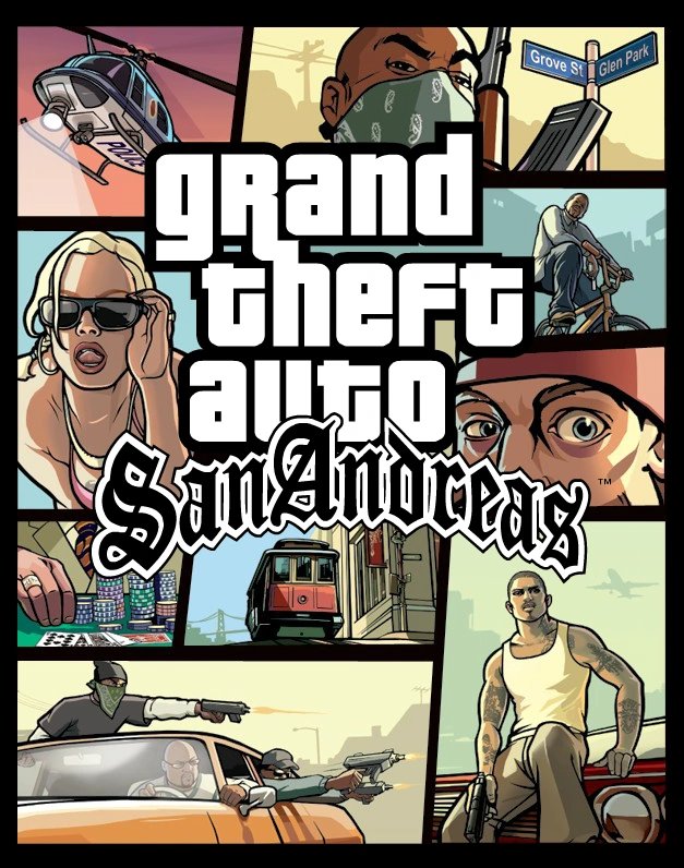 - GTA San AndreasGrand Theft Auto: San Andreas es un videojuego creado por Rockstar North, filial de Rockstar Games. Es la octava entrega de la saga Grand Theft Auto, y el tercer título de esta saga para la plataforma PlayStation 2, Xbox, PC, Xbox 360, Mac y PS3. Es el juego más vendido para Playstation 2 con 20,17 millones de copias sin contar piratería. El juego contiene nuevas y numerosas mejoras con respecto a las anteriores entregas, la más notable es el escenario, ya que por primera vez, el juego se desarrolla en un estado entero en vez de en una sola ciudad, además de más posibilidades en cuanto a la personalización del personaje (vestuario, peinado, etc.). Se comercializó un pack de una trilogía de los primeros juegos en 3D que eran GTA III y GTA Vice City.