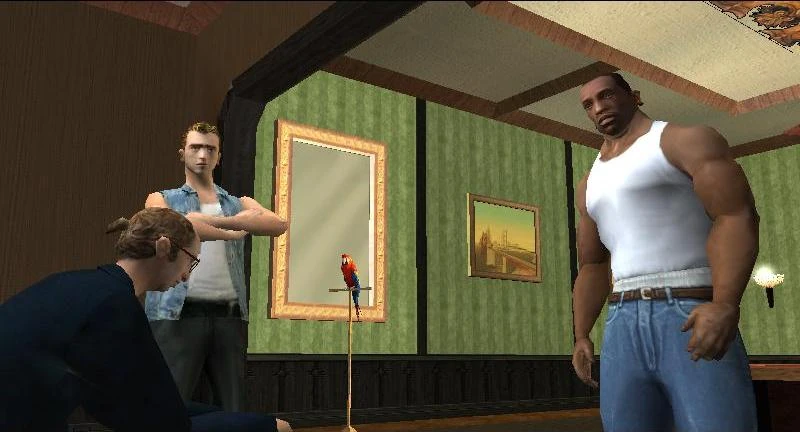 - En un momento del cinemática, Maccer menciona a que hay unas tías buenísimas que se encuentran en la piscina, pero cuando Rosie le este contando a CJ la "historia trágica de su vida" se podrá ver atrás a Maccer masturbándose y Paul tratándole de detener.