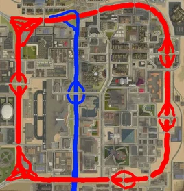 Siguiendo con el recorrido, al lado este, se aprecia el aeropuerto de la ciudad. Unos metros más adelante, hay unos carteles que anuncia los desafíos que organizará el estadio de Blackfield. Más adelante y siguiendo con el recorrido hacia el sur, se localiza unos letreros indicando las rutas hacia los lugares más cercanos del lugar. A pasos de ahí, de hay un puente para el cruce de las personas y coches. Finalmente, el camino del sur acaba, dando paso al cruce de Blackfield.