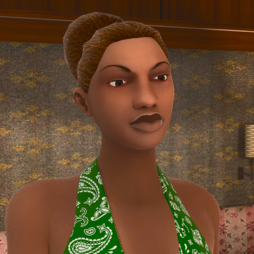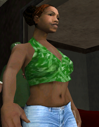 - Su vestimenta es similar a la de una prostituta, cosa que Sweet le dice en la misión Cesar Vialpando, seguido de los obreros, al ofendenderla de esa forma en la misión Deconstruction.