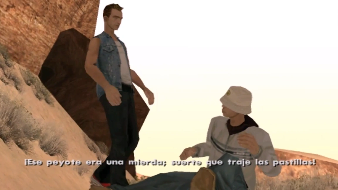 - Aunque pare a orinar en "Don Peyote", durante la cinemática antes del viaje él mismo menciona haberse orinado ya encima, por lo que es ilógico que tuviera necesidad durante el viaje.