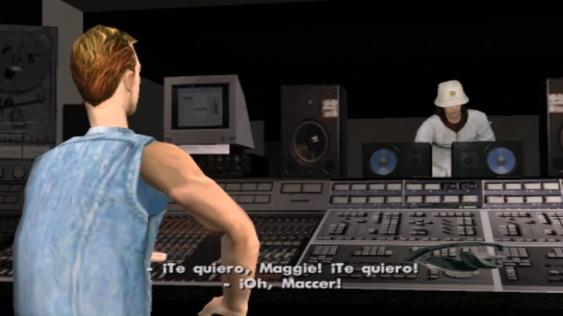 Luego, Maccer se encuentra bailando en la cabina de sonido, mientras Carl discute con Madd Dogg sobre el nuevo vídeo que su rival OG Loc ha sacado al aire con las palabras del libro de rimas robado de la mansión. Maccer no soporta sus impulsos y comienza a masturbarse, causando la rabia de Paul, que le recrimina que pare un poco, y le exige que piense en Margaret Tatcher. El esfuerzo resulta fallido y Maccer se masturba, mientras murmura "te quiero, Maggie".