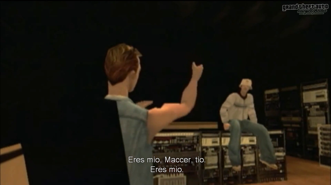 Maccer afirma que había una chica en Hamburgo a la que le encantó como se masturbaba. Paul lo corrige diciendo que no era una chica, sino un hombre. Maccer responde que tenía unos pechos enormes, a lo que Paul replica que eran "enormes pechos de tío", que el tipo era un homosexual depravado y drogadicto y que por poco no se salva de que lo violen. En ese momento Mike Toreno hackea el sistema de sonido de Carl para hablar con él y Maccer le echa la culpa de las fallas. A lo que Paul contesta que no es su culpa que el equipo esté defectuoso.