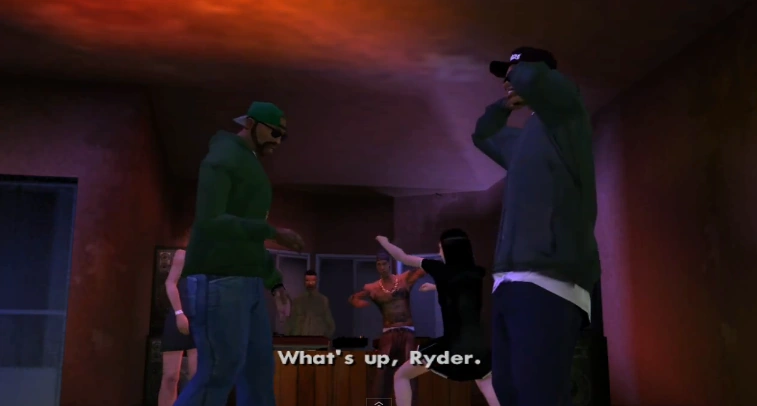 Ryder | Ryder es un conocido cercano de Jeffrey. Ryder (posiblemente) conozca a OG Loc desde su niñez y que lo trata igual que los demás pandilleros de los GSF, y Loc lo respeta por su rango dentro de la banda. Físicamente los dos coinciden en la misión House Party, dentro de casa de OG Loc, donde se reúne con CJ pero los dos salen a la calle para dejar de oír la horrible música de Loc. |