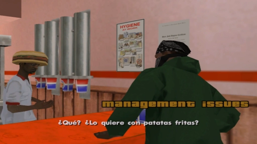 El agente de libertad condicional de Loc le consiguió un trabajo como técnico de higiene en el Burger Shot de Verona Beach, allí le dará algunas misiones a CJ.