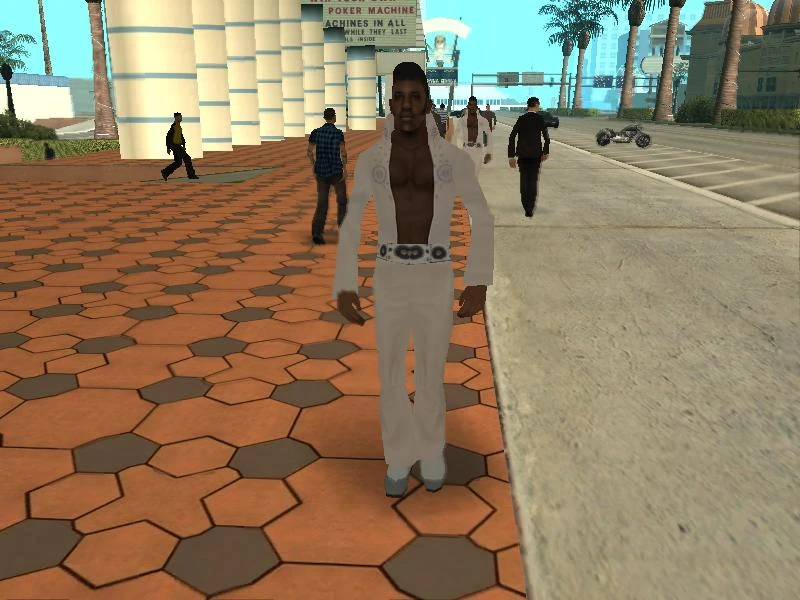 - Blanco entero (Igual que en GTA 2) y se peinan con un tupé al estilo Elvis Presley, obviamente.