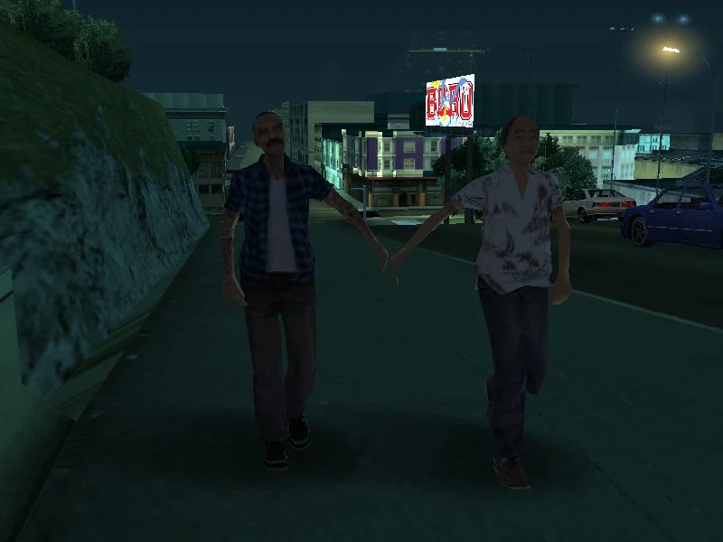 Hay algunos peatones que se pasean cerca y se dan de la mano y siguen andando. Casi siempre son de hombre y mujer, sin embargo, en San Fierro se pueden encontrar parejas homosexuales(tanto hombres con hombres como mujeres con mujeres) más que nada en Hashbury y Queens.