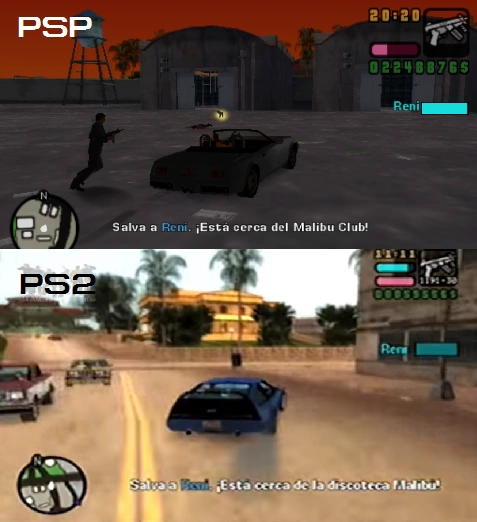 - En PSP se menciona el Club Malibu por su nombre, pero en PS2 se le llama: "Discoteca del Malibu".