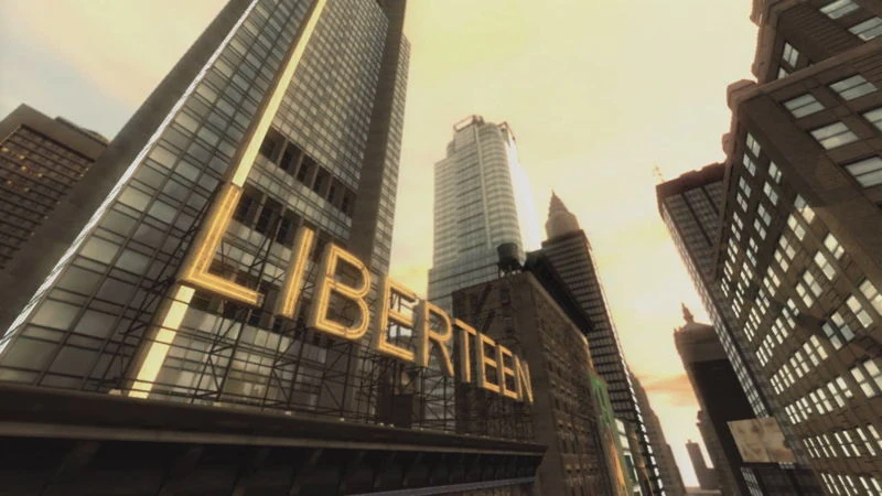 Ahora aparece una vista de Liberty City con un asombroso atardecer, con el logotipo de Grand Theft Auto IV apareciendo poco a poco hasta cubrir toda la pantalla. Luego aparecerá el logo de Rockstar Games en color negro.