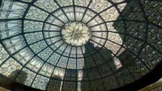 Probablemente visto desde abajo del domo de la catedral. La cámara en foca el techo, el cual es de cristal y se pueden ver edificios de la parte de afuera, con tremendos efectos luminosos.