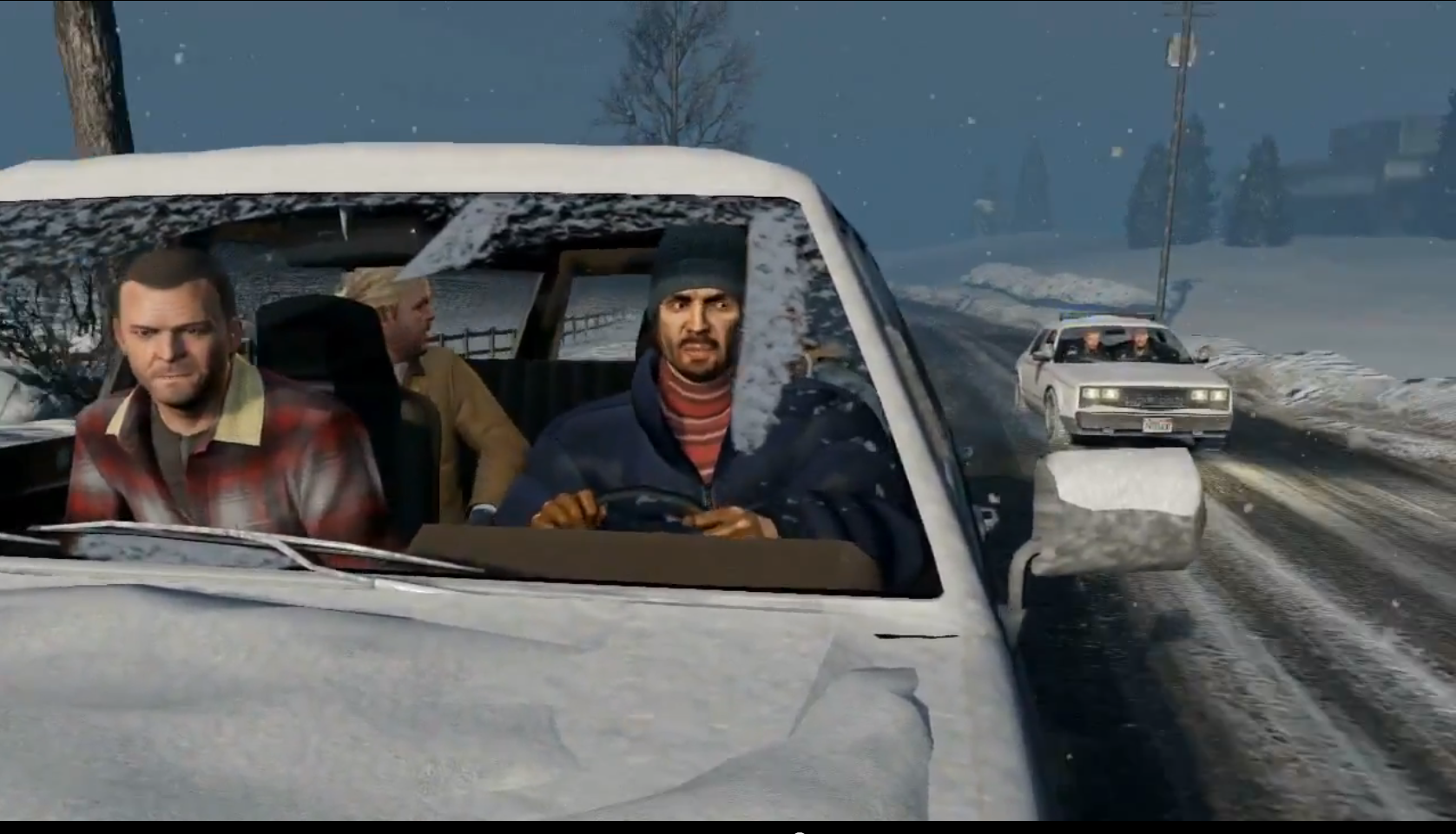 Michael, Trevor et Brad fuyant la police en 2004 après le braquage de Ludendorff.