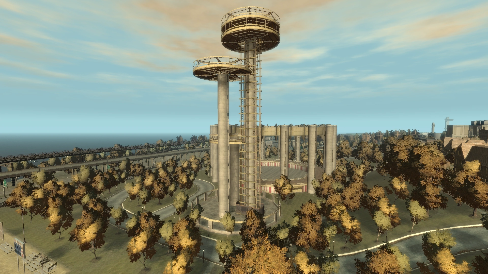 Башни основаны на смотровых башнях павильона штата Нью-Йорк.