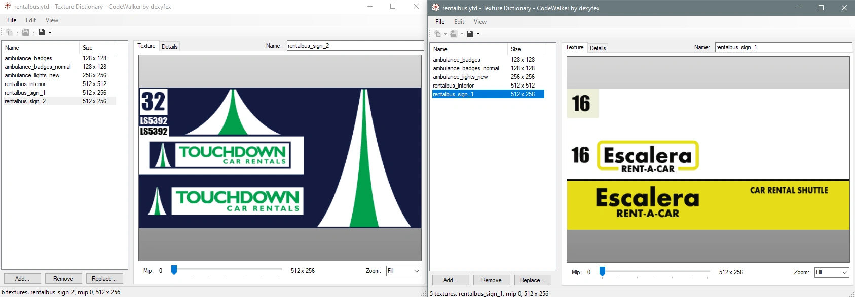У микроавтобуса есть два варианта окраски: бело-жёлтая Escalera Rent-A-Car и сине-белая Touchdown Car Rentals. Хотя обе окраски были в первоначальном релизе игры, окраска Touchdown была удалена в обновлении «Ограбления». Её всё ещё можно увидеть в оригинальных версиях игры (см. Разное).