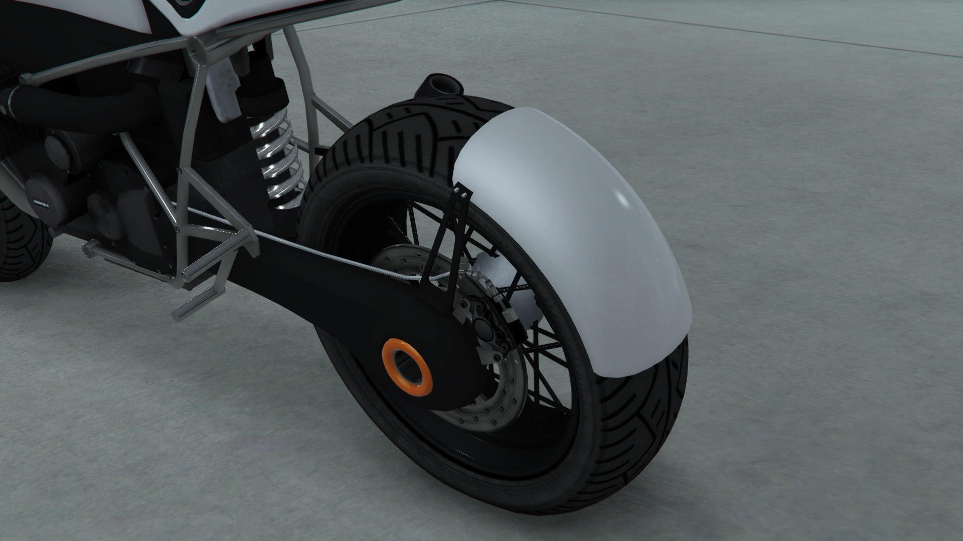 Задняя часть осталась такой же, как у стандартной модели, но дорожные аксессуары за задним колесом больше не используются, так как это запрещено правилами дорожного движения.