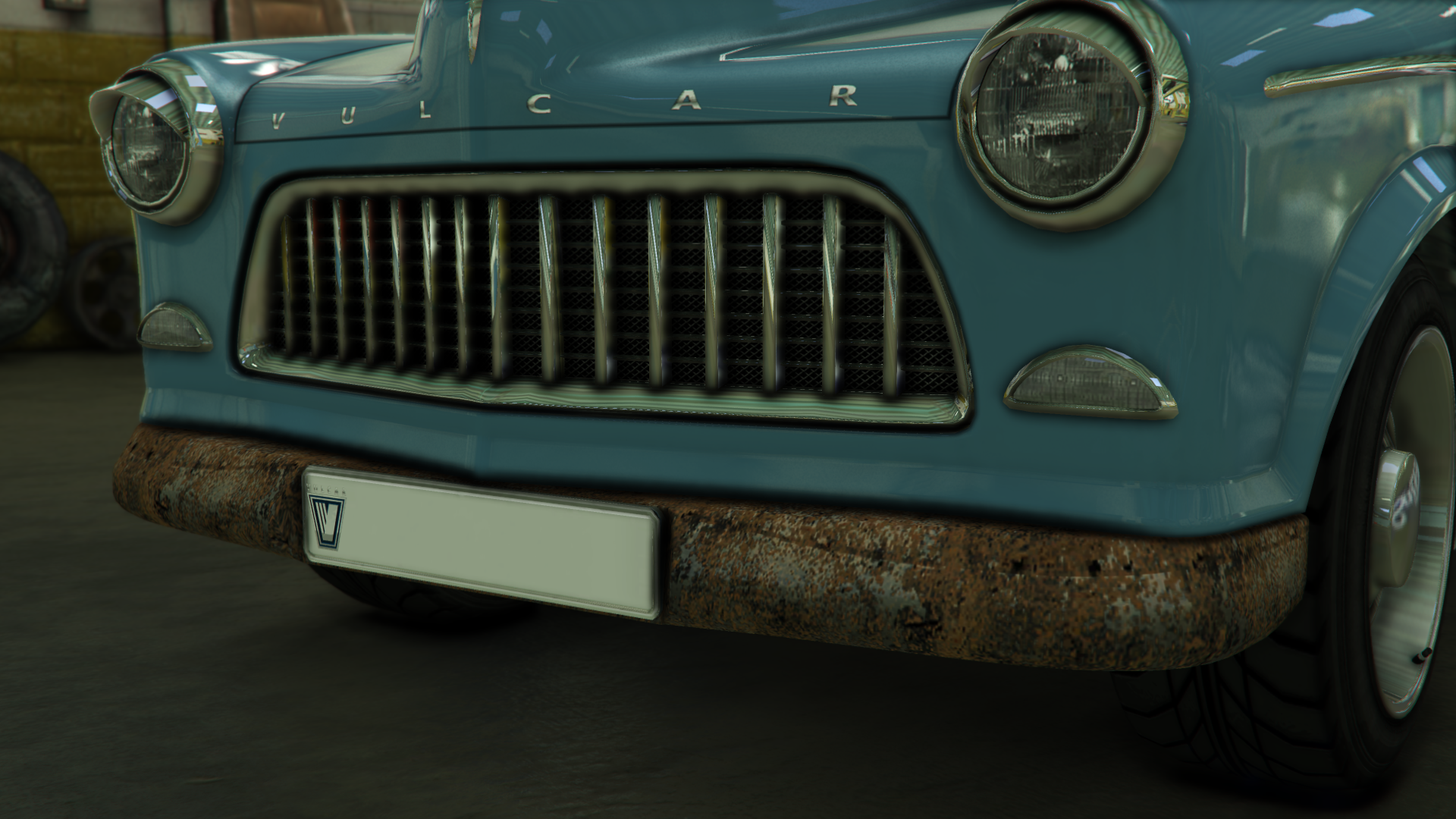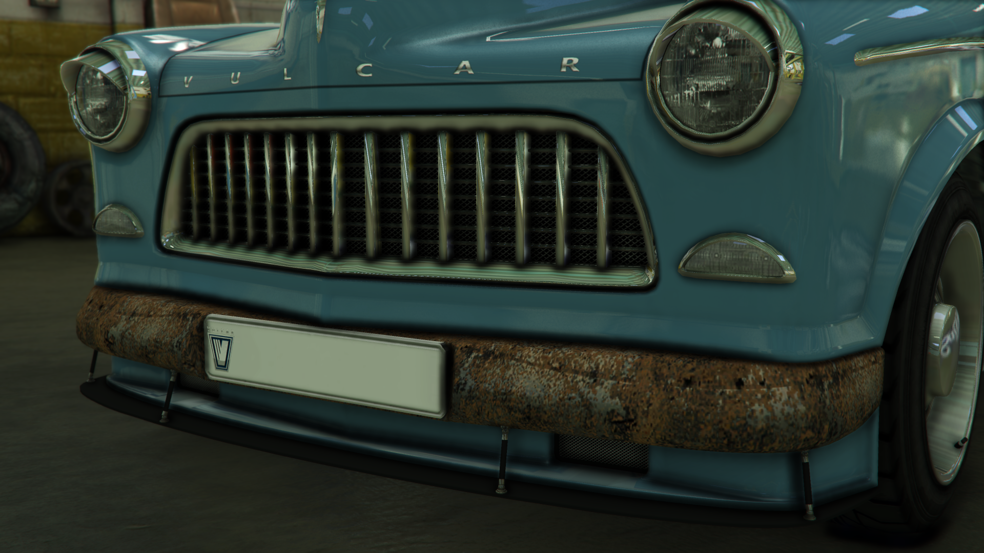 Автомобиль отличается простым и угловатым дизайном, а передняя часть оснащена небольшим бампером с номерным знаком в европейском стиле по центру. Трапециевидная решётка радиатора занимает большую часть передней части автомобиля, а внешние зоны занимают круглые фары с небольшими накладками сверху и более мелкими круглыми фарами снизу основных фар. Капот имеет V-образную выпуклость с деталью спереди и серебристой надписью «VULCAR» над решёткой радиатора, а также вентиляционную секцию возле лобового стекла.