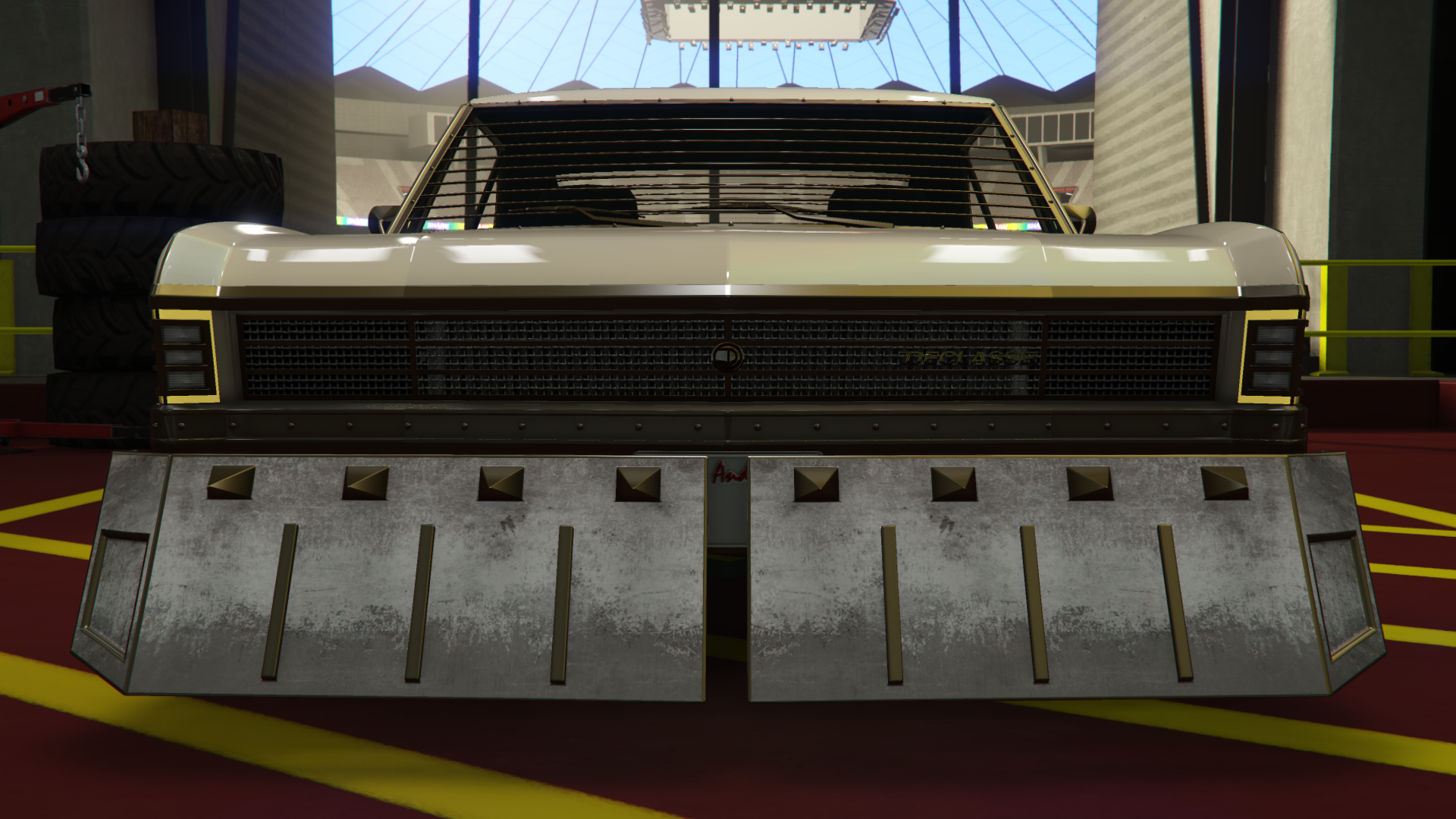 - При установке модификации «Тяжёлая броня» окна задней четверти закрываются металлическими панелями, но только снаружи. При установке вид от первого лица внутри автомобиля по-прежнему можно смотреть наружу через задние боковые окна, как будто металлических панелей там нет.