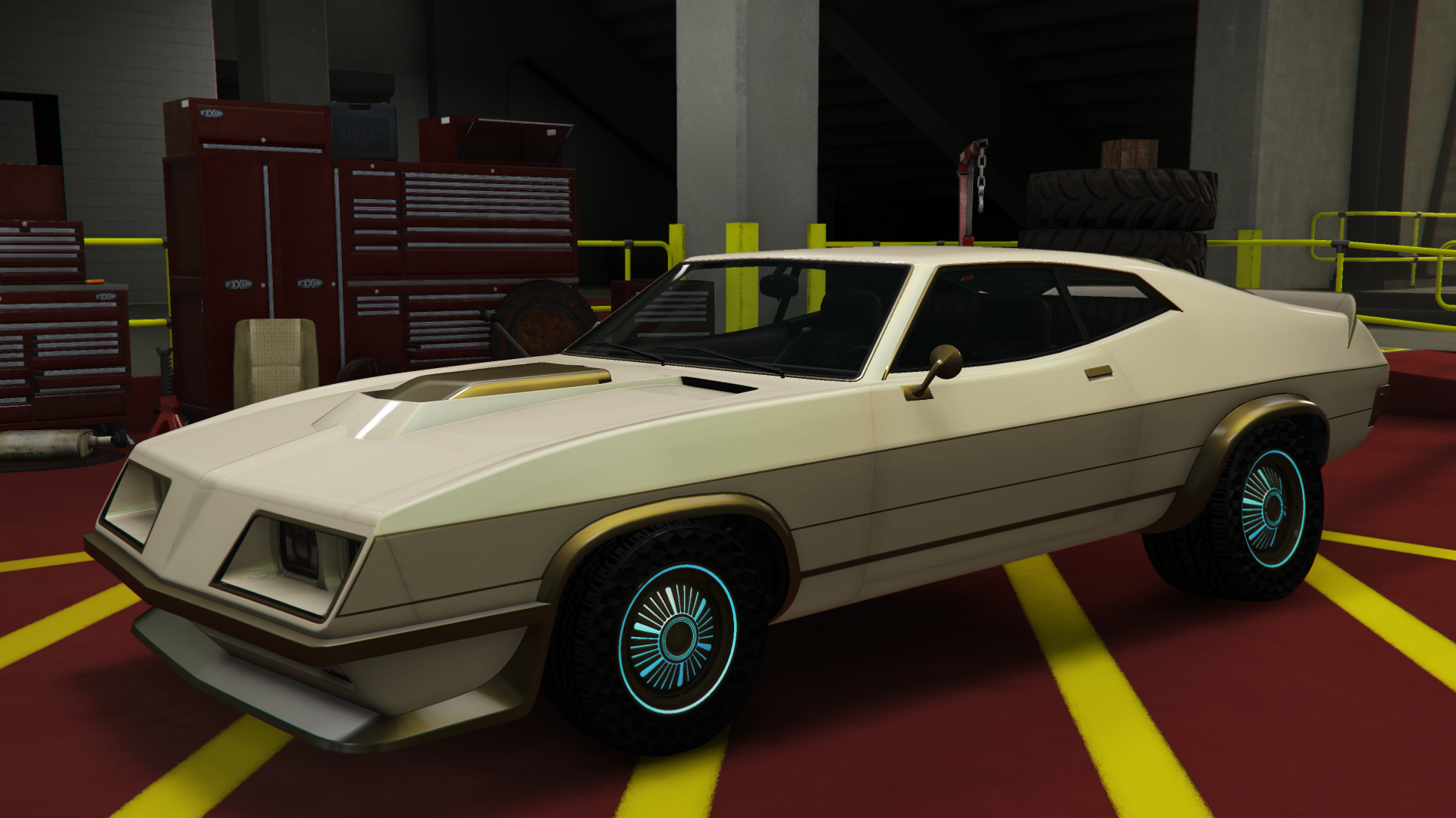 Автомобиль оснащён двигателем V8 с одним распредвалом, который можно модифицировать с помощью суперчарджера, соединённого с 4-ступенчатой коробкой передач в компоновке с передним двигателем и задним приводом. Этот же двигатель имеет полностью анимированный ремень ГРМ и шкивы и, по-видимому, использует отредактированную вариацию звука двигателя таких автомобилей, как Drift Tampa и Hotring Sabre, с эффектом звука наддува, также используемым на Tampa и его вооружённом варианте.