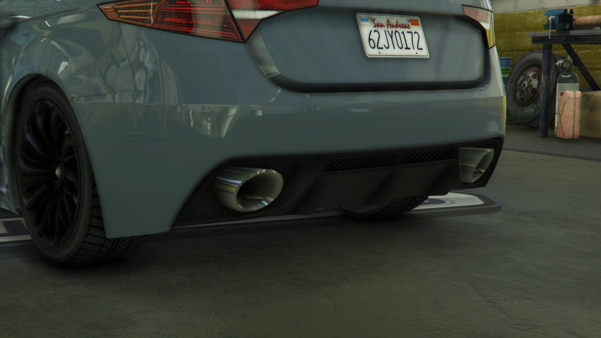 Кузов автомобиля окрашен в основной цвет, в то время как вторичный цвет, похоже, применяется только на вариантах вторичных цветов, доступных в автомастерских. Хотя это и недоступно, цвет отделки также доступен для внутренней панели приборов, крышки клаксона, части дверей и сидений, которая всегда установлена на чёрный цвет. Его колёсные диски идентичны дискам Adder; однако, в отличие от Adder, эти диски окрашены в соответствующий цвет колёс и не хромированы (хотя это присутствует только на тех, которые были созданы в редакторе контента, тех, которые были показаны в подготовке и финале ограбления казино Diamond, и тех, которые были получены в награду из колеса удачи).