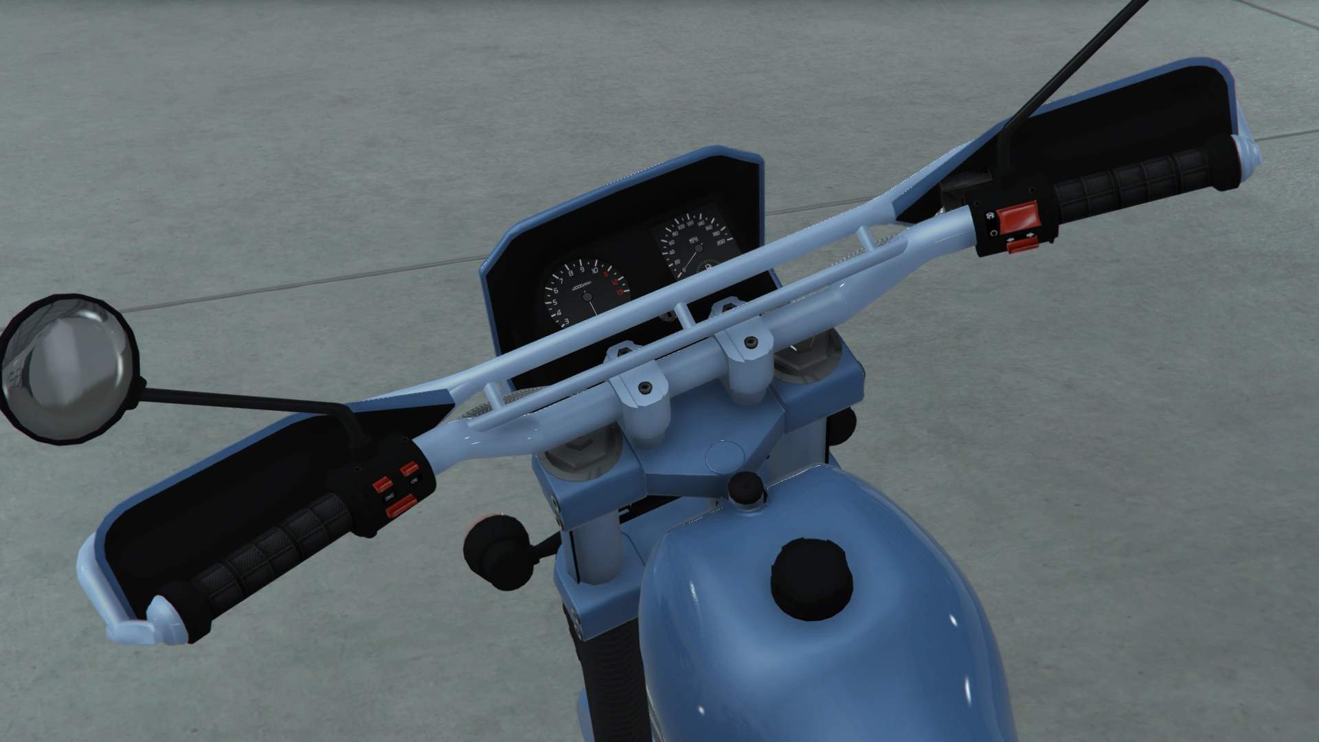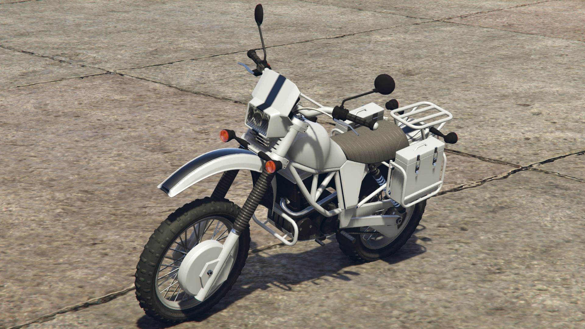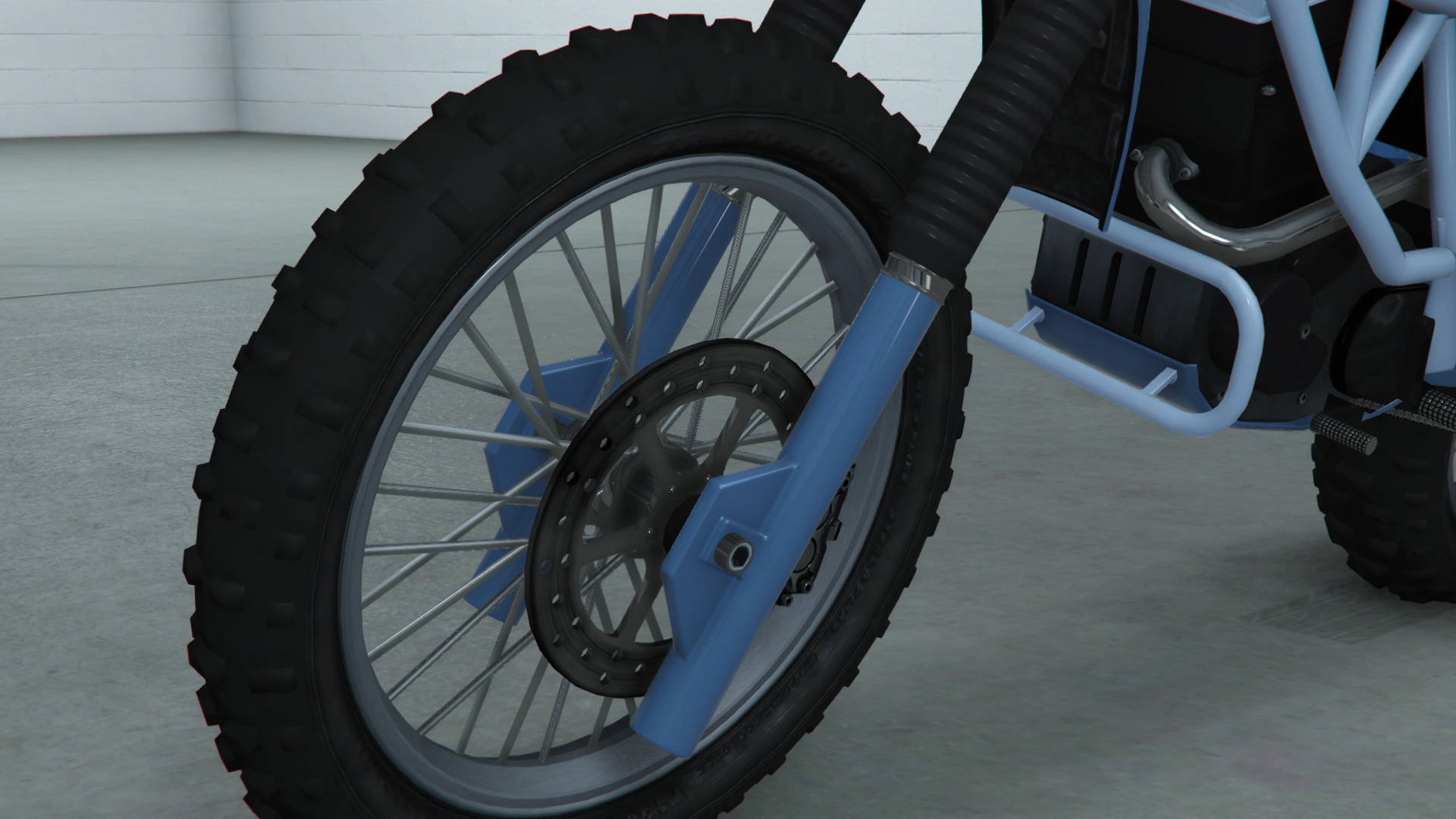 Основной цвет мотоцикла нанесён на крышку переднего диска, крылья, обтекатель, топливный бак, боковые панели и поворотный рычаг, в то время как дополнительный цвет нанесён на руль, задние части вилок между зажимами, защитные рамы и заднюю стойку. Он использует ту же конструкцию колёс, что и Manchez Scout, Manchez, Sanchez и Enduro, являясь производным от «проволочных» дисков, доступных в Los Santos Customs и других автомастерских.