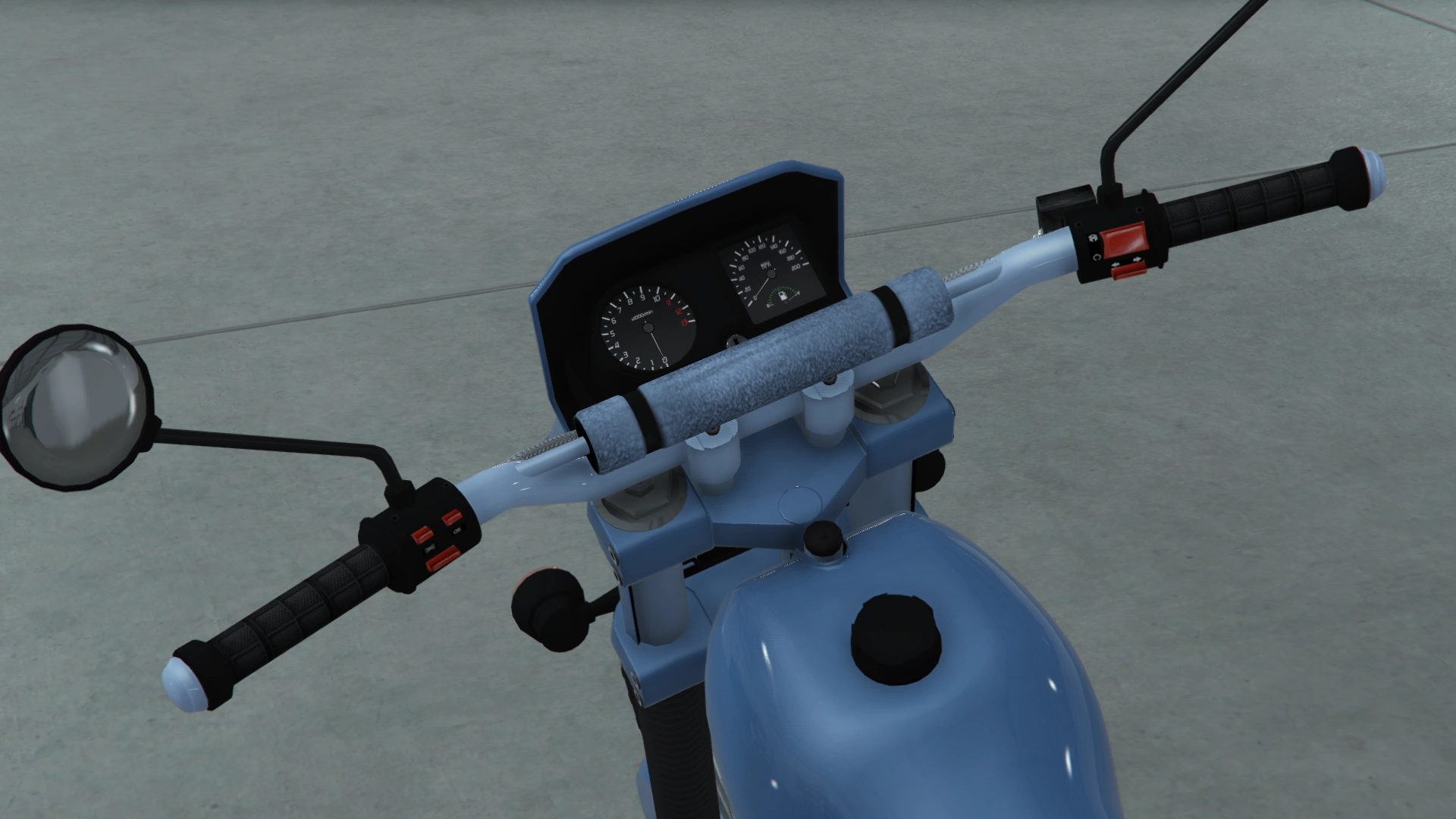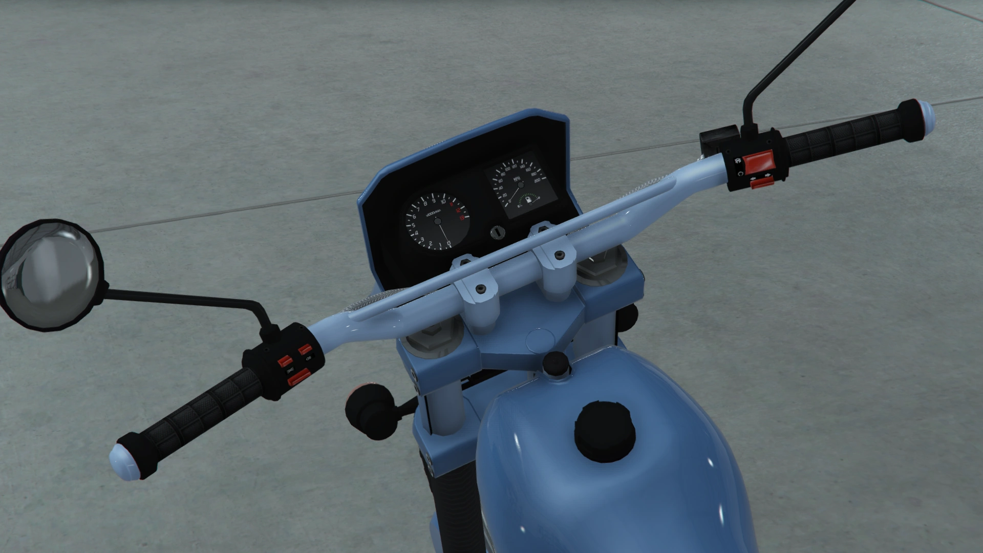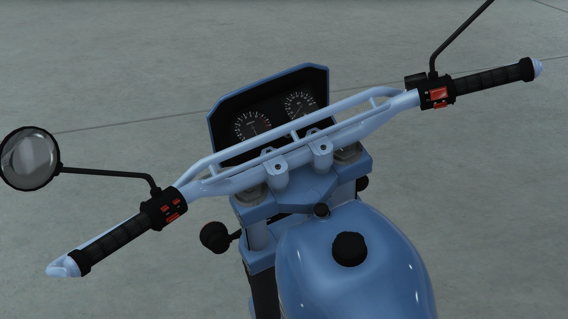 Основной цвет мотоцикла нанесён на крышку переднего диска, крылья, обтекатель, топливный бак, боковые панели и поворотный рычаг, в то время как дополнительный цвет нанесён на руль, задние части вилок между зажимами, защитные рамы и заднюю стойку. Он использует ту же конструкцию колёс, что и Manchez Scout, Manchez, Sanchez и Enduro, являясь производным от «проволочных» дисков, доступных в Los Santos Customs и других автомастерских.