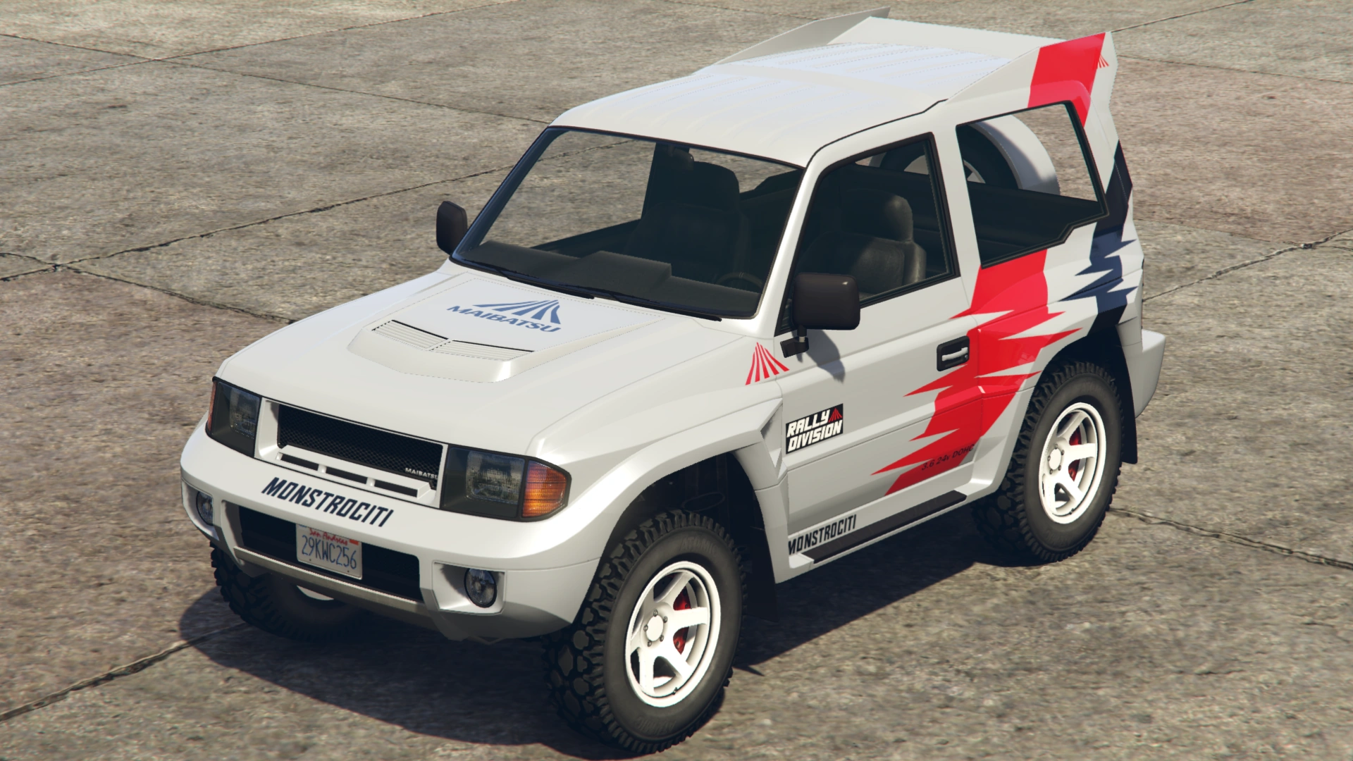 - Раскраска «MonstroCiti» основана на наклейках Ralliart на Pajero Evolution 1997 года.