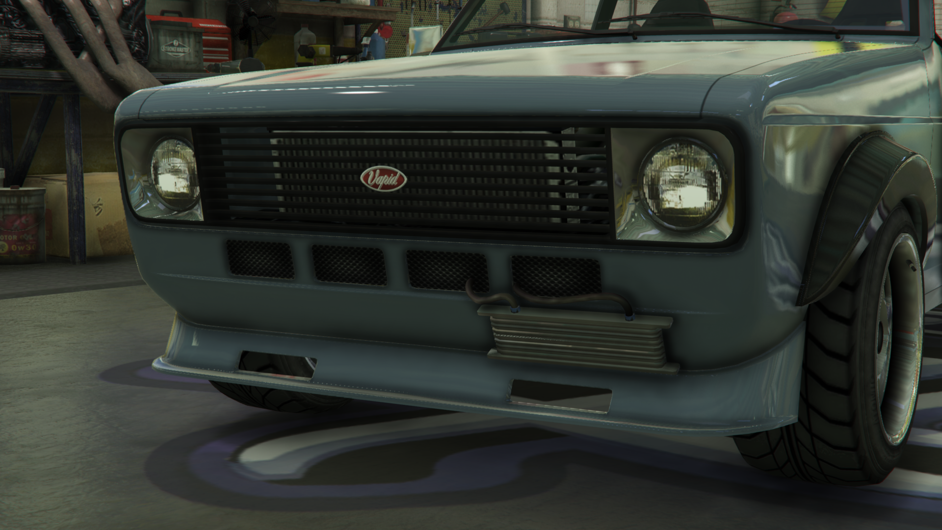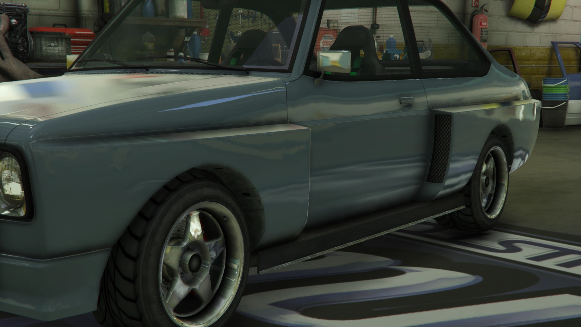 Основной цвет автомобиля нанесён на кузов и внутреннюю обшивку, а дополнительный — на колёсные арки и крышку двигателя. В нём используется комплект дисков, идентичный тюнерскими дискам «Stanced EG», доступным в Los Santos Customs и других автомастерских.