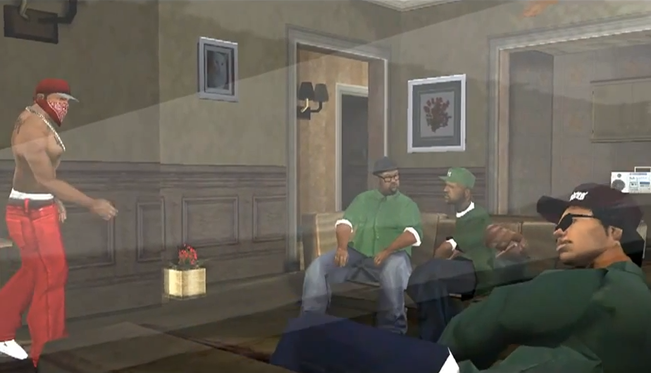 - Многие раненые члены Grove Street Families, которых Карл встретит в мотеле, могут быть убиты, но они останутся живыми, из-за проигрывания анимации ранения. Также если нацелится на труп на самом входе, то мы увидим, что по мнению игры он жив, по той же причине проигрывания анимации. Если пытаться пройти над этими персонажами, то Карл будет натыкаться на препятствие, а эти персонажи будут говорить фразы (рты будут двигаться), как при столкновениях с прохожими, сколько бы Карл в них не стрелял.