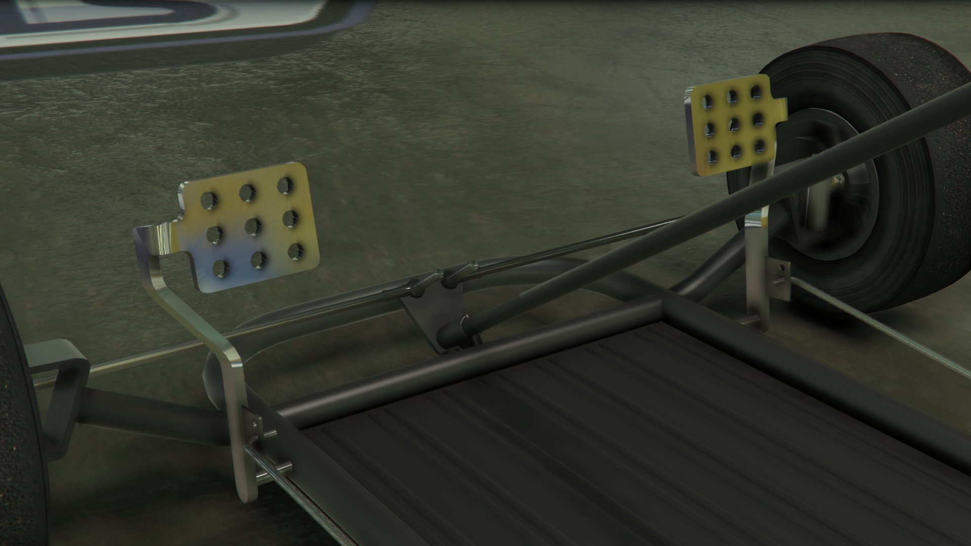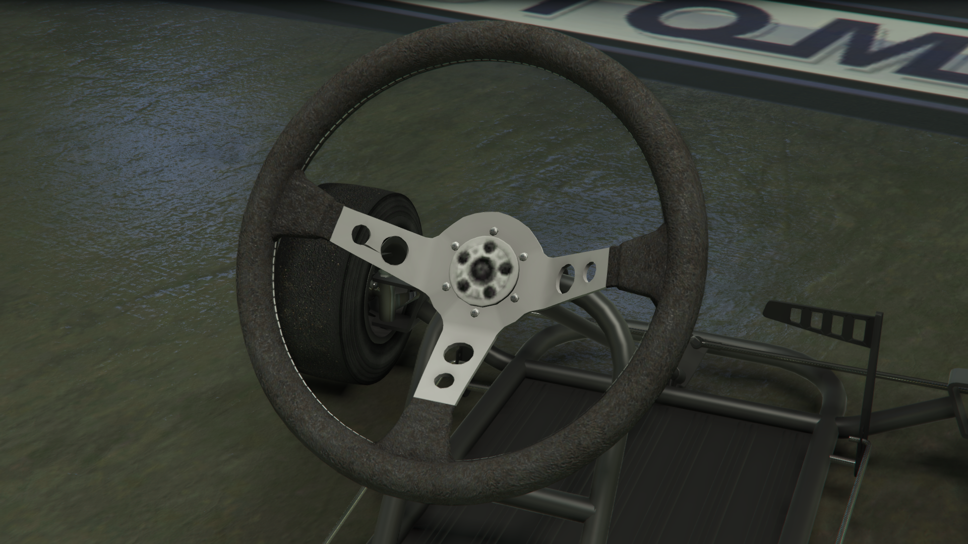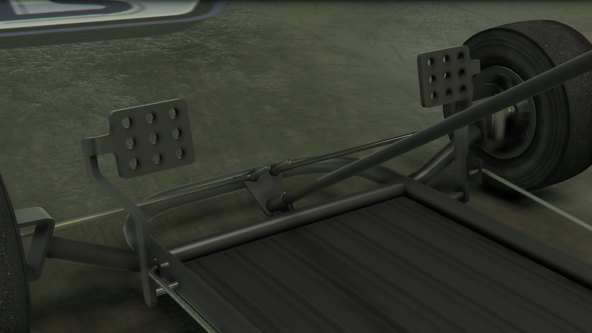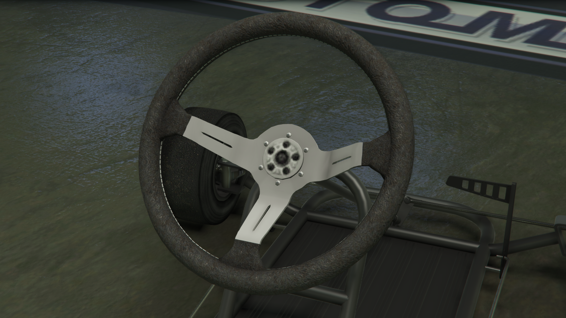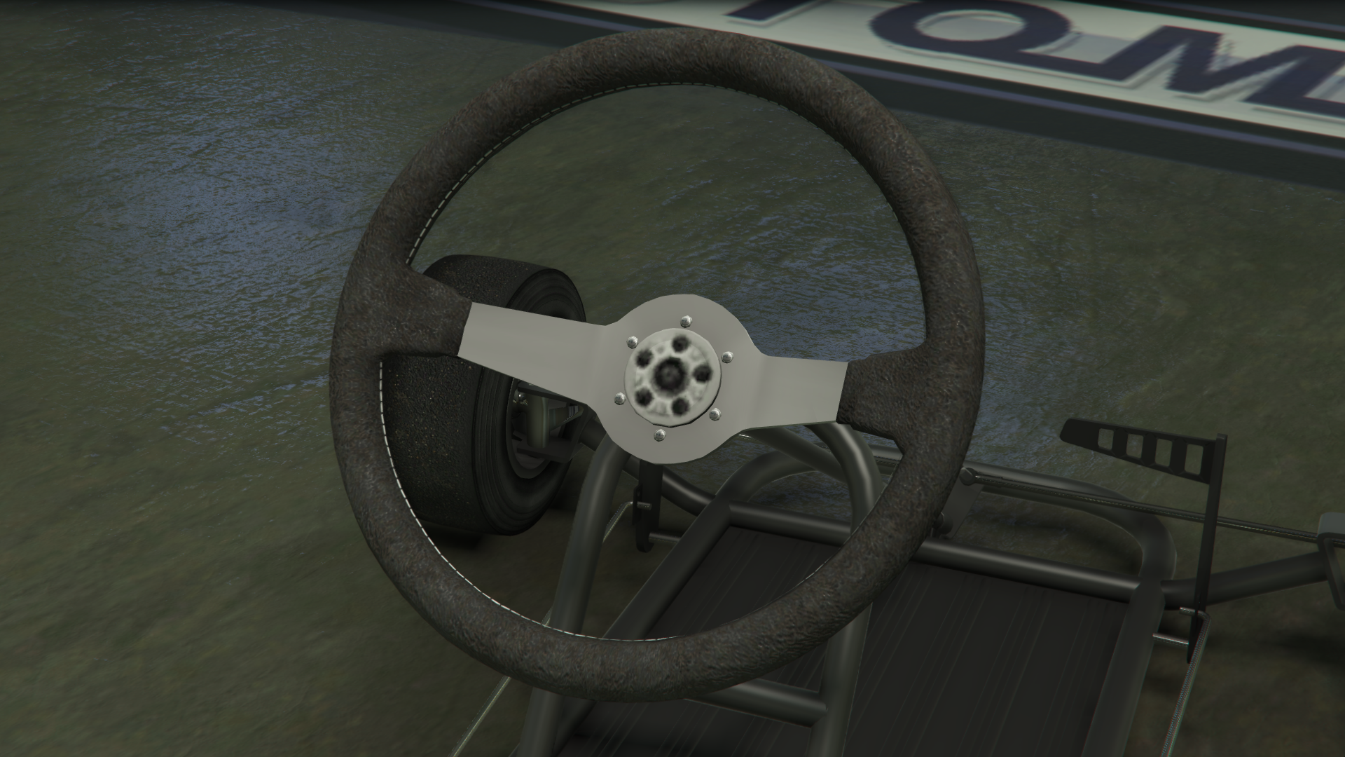 Транспортное средство изображено с простым трубчатым стальным каркасом шасси и базовым полом, где в передней части находятся передние колёса, рулевой механизм и две боковые педали, обеспечивающие соответствующие элементы управления дроссельной заслонкой и тормозами, в то время как в задней части находится основное сиденье, небольшой двигатель с небольшим выхлопом и топливным баком, а также задняя ось с одним тормозным диском и цепным приводом с левой стороны, соединённым с двигателем. Поскольку транспортное средство не предназначено для использования на основных дорогах, в нём отсутствуют какие-либо формы освещения или циферблатов, хотя радио всё ещё доступно.