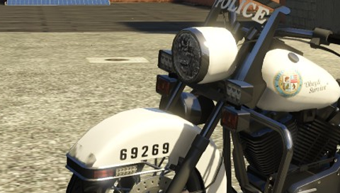 The Police Bike's front fender in GTA V. Note the identification number on the fender.