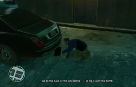 First, the player must go to an alley way on Inchon Avenue near the McReary house and collect the bomb. The Ancelottis will be meeting with the Albanians in Little Italy. Tony Black's Cognoscenti is parked off an alleyway in Feldspar Street, next to Drusilla's. The player must get there, plant the bomb on the back of the car, and use a vehicle to follow Tony Black. Tony Black and another member will exit the restaurant and drive off. The player must then follow them back to North Holland without shooting them or getting too close. After they arrive, they go to an old factory. The player must get to a safe distance and detonate the bomb. The car explodes under the gas canisters and Tony is killed in the explosion. Some gang members will survive the explosion. When the player finishes them off, they get a two-star wanted level. After a successful evasion, Niko calls Gerry and the mission ends.