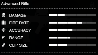The Advanced Rifle has one of the highest damage per shot in its class, sharing it with the Compact Rifle and Heavy Rifle at 34 damage per shot, and shares the same rate of fire as the Bullpup Rifle at 500 rounds per minute, allowing it to remain very competitive among the assault rifles.