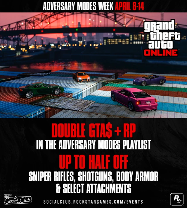 - Double GTA$ and RP rewards in the Adversary Modes 1 Playlist, until April 9.[3]