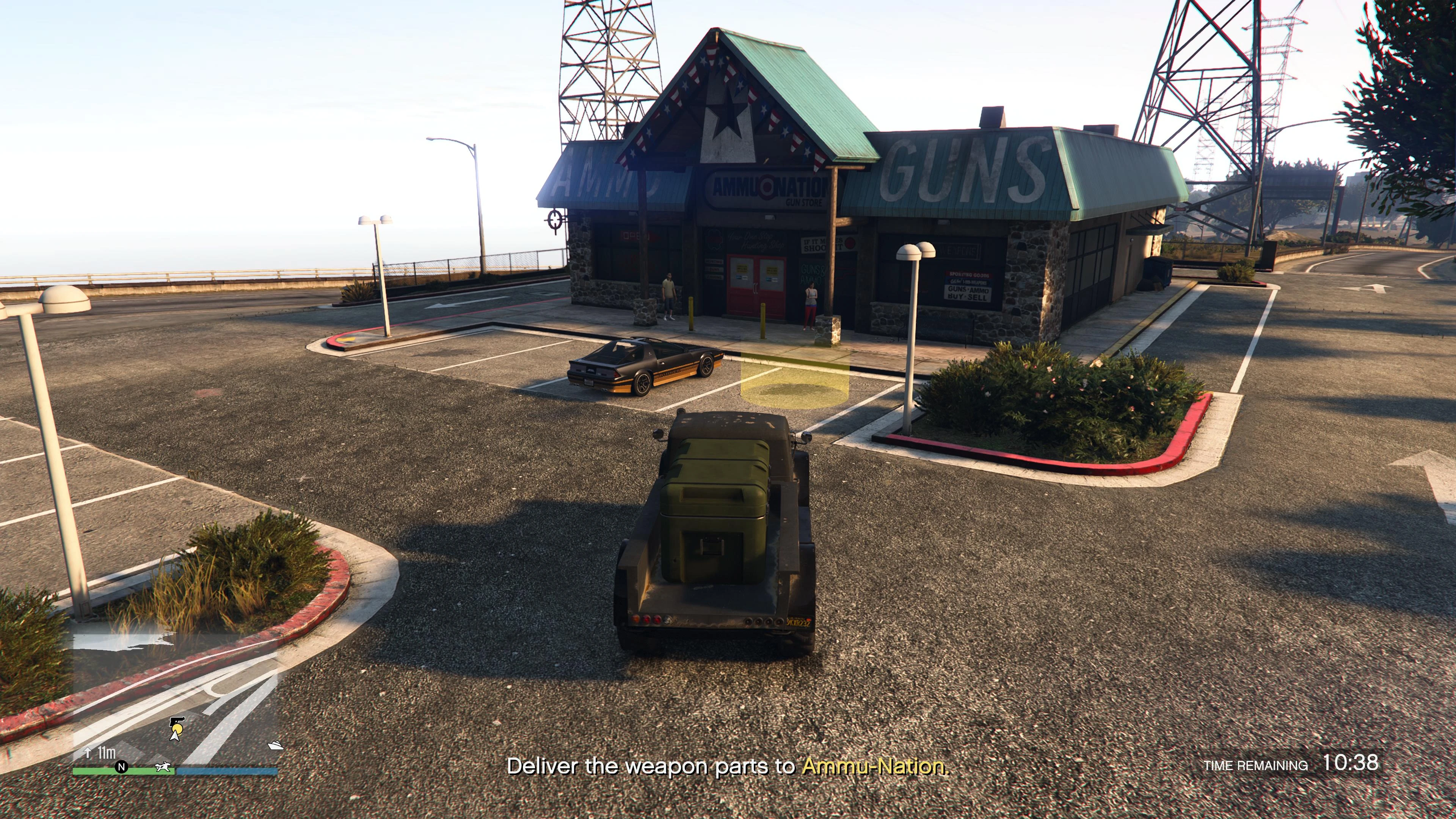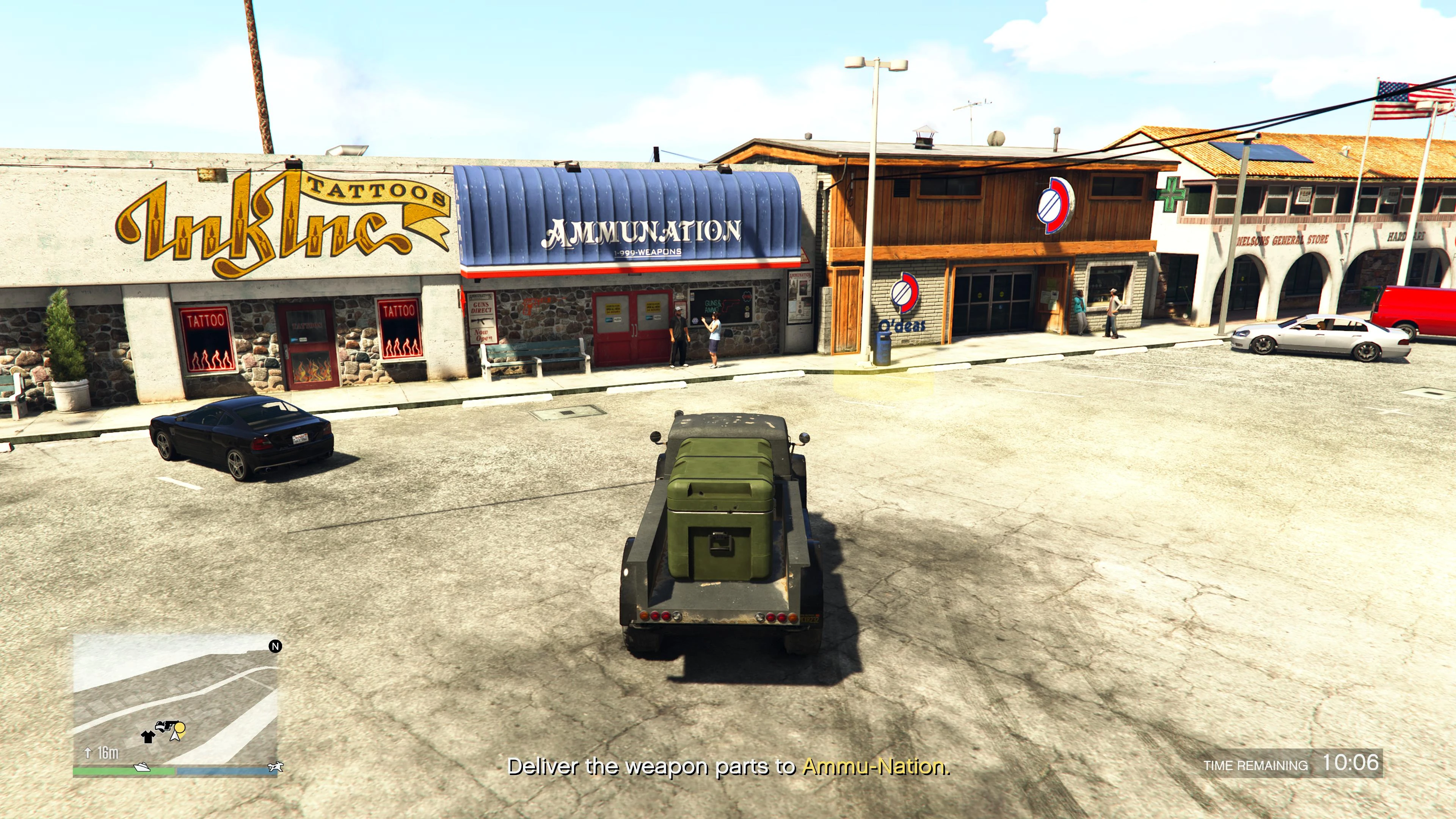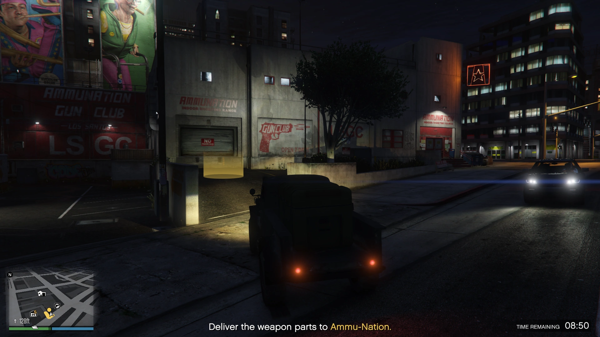 Upon entering the Duneloader, the player will be instantly exit the bunker and the mission will start. After a brief phone call from Agent 14, a destination will be given, which will be the loading dock or parking lot of any Ammu-Nation location in the state. The game will also accept airlifting the vehicle via Cargobob hook as a legitimate method of transport.