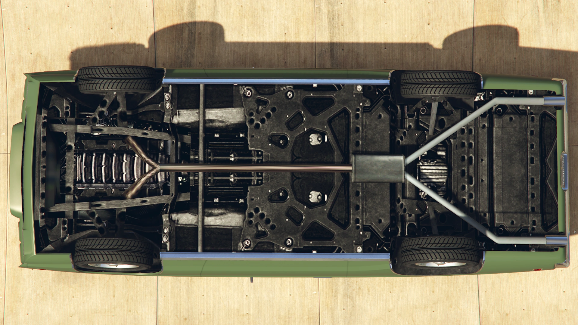 The car is powered by a single-cam V8 engine, coupled to a 3-speed gearbox in a front-engine, rear-wheel-drive layout. It shares the engine sound with the Dominator, the Ruiner and the Tulip.