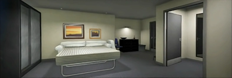 Purchasing the personal quarters option unlocks a door in the office to a stairway and a ground-level door by the Spectator Box exit, both leading into a functional living space directly beneath the office area that includes a bathroom and shower. The Arena Workshop thus becomes an optional spawn point. There is also a bottle of rum available. When the Office Style is changed, it will also change the personal quarters to match.