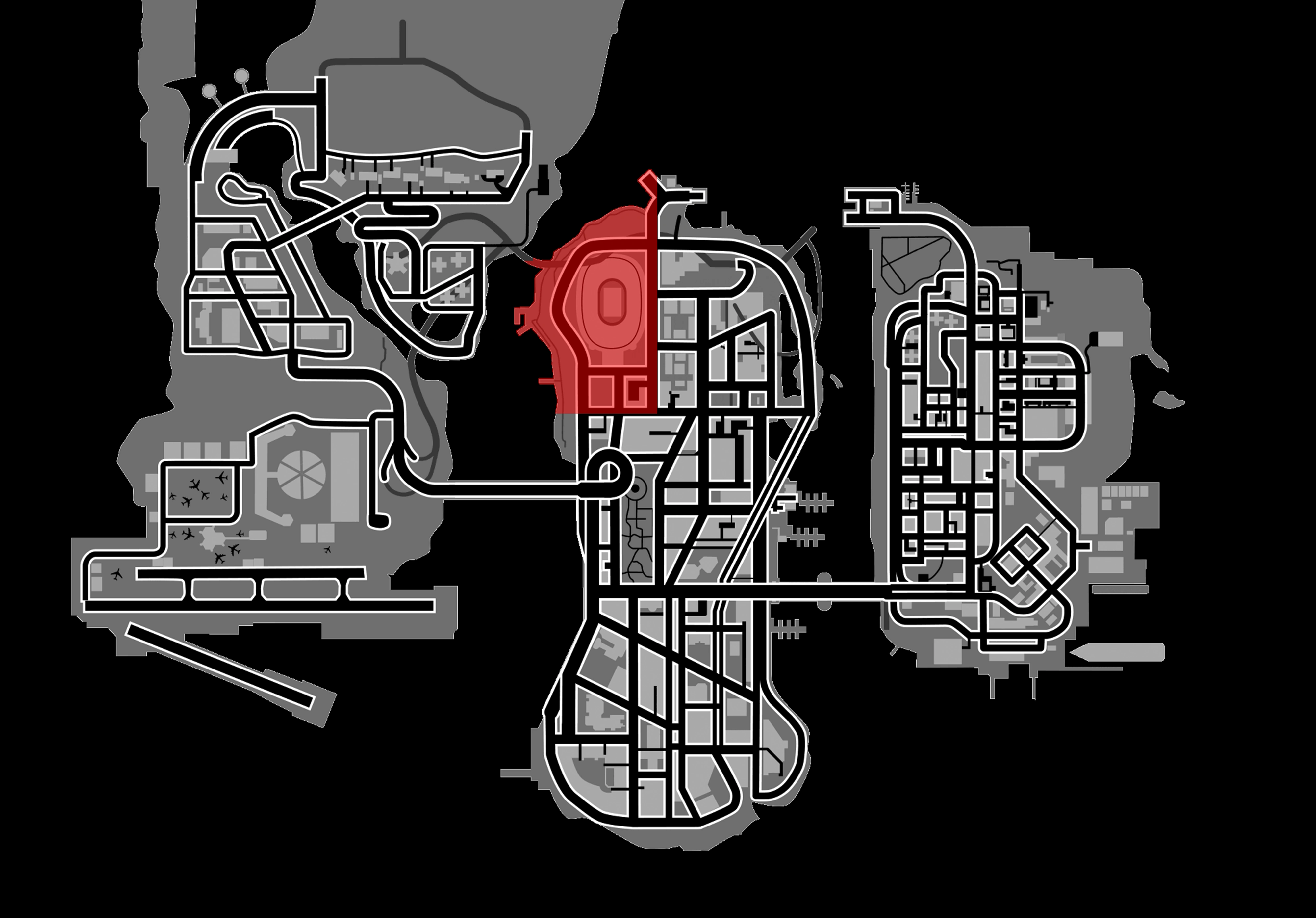 Aspatria is the northwestern most district in Staunton Island, being a coastal district with a scenic shoreside path along its western and northern edges. The incorporates a mixture of conventional commercial and residential buildings, as well as recreational locales, such as the aforementioned shoreside parkway and, most prominently, a stadium, Liberty Memorial Coliseum, home to the Liberty City Cocks and the Liberty City Beavers. The commercial and residential buildings, as well as the Coliseum's carpark, are situated to the south, while the stadium occupies much of the district towards the north.