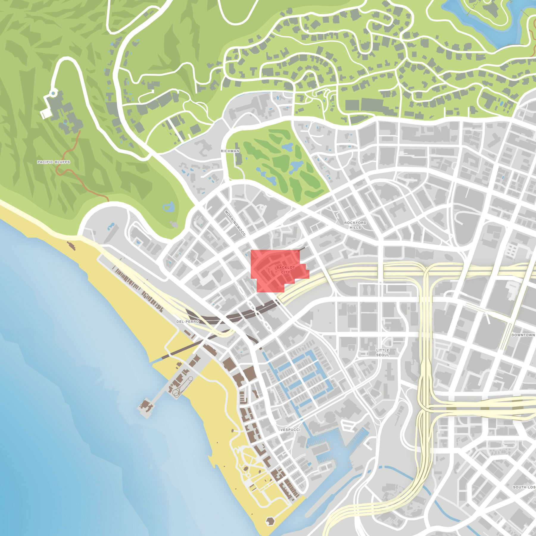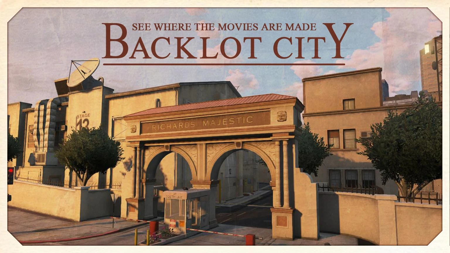 Backlot City, simply referred to as Richards Majestic in the map and Richards Majestic Studio in the police dispatch, is a neighborhood in Los Santos, San Andreas, in Grand Theft Auto V and Grand Theft Auto Online. The entire neighborhood is gated and consists of only one business: Richards Majestic Productions.