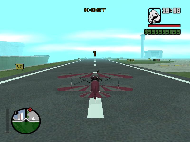In this race, Carl Johnson must pilot a Stunt Plane through a series of checkpoints, starting from the runway in Easter Bay Airport. This race can be started by entering the red marker behind a hangar in the Las Venturas Airport, only after finishing the cutscene of Verdant Meadows (Deconstruction in the mobile versions and The Definitive Edition), but only when the driving school has also been completed.